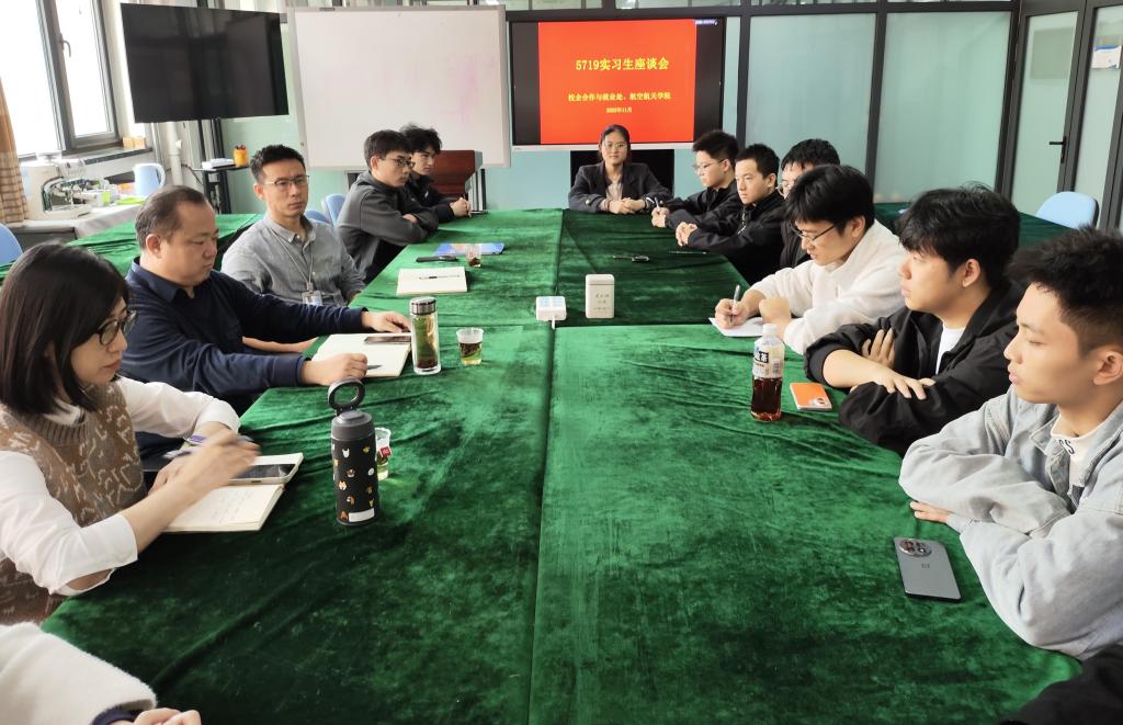 为进一步提升校企合作项目质量,了解学生参与项目实习的收获与心得,为后续项目发展积累经验,11月5日,航空航天学院组织召开5719工厂实习项目总结座谈会,航空航天学院党总支书记沈惠旺、副书记冯昕妤,校企合作与就业处副处长于洋,以及返校11名该项目实习生参会,并进行了深入交流。