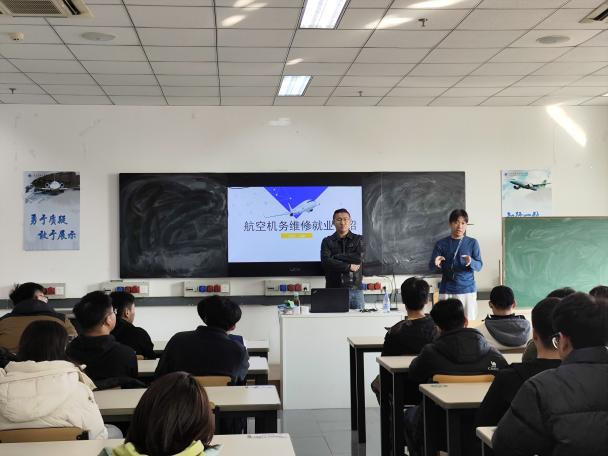11月18日,学院在E4-C404举行航空机务维修职业规划及147证书培训宣讲会,华彬航空集团有限公司吕佳佳、丛聪出席本次活动,为航空学院学子全面解析航空机务维修领域职业发展路径与147维修培训证的核心价值,学院30余名学生现场参会。