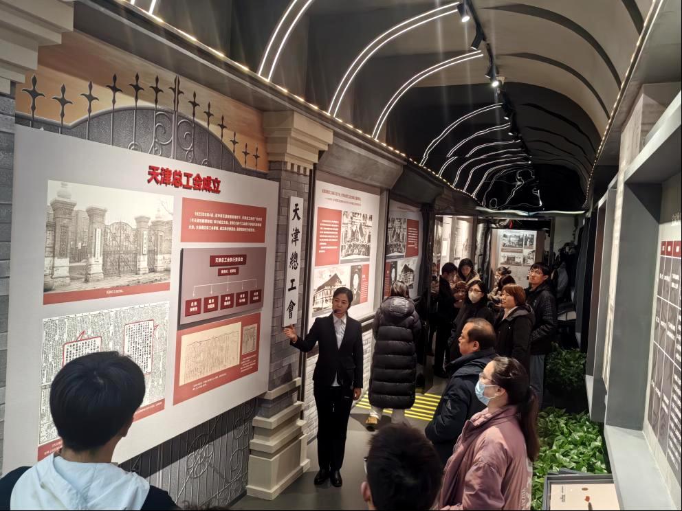 市总工会展览厅,一幅幅承载历史印记的图片、一件件记录时代变迁的实物,系统展示了全国及天津市劳动模范与先进人物的感人事迹。大家认真聆听讲解,在一件件展品前驻足观看,从“宁愿一人脏,换来万家净”的环卫工人徐文华等先进事迹中,深刻体悟“爱岗敬业、争创一流”的劳模精神、“崇尚劳动、热爱劳动”的劳动精神和“执着专注、精益求精”的工匠精神。