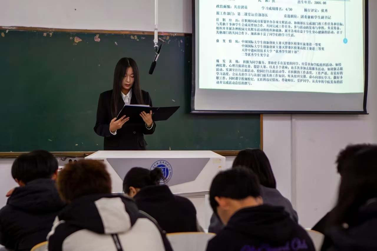 为进一步加强学院团委・学生会建设,选拔优秀学生骨干接力服务工作,10月 31 日,天津中德应用技术大学航空航天学院顺利召开团委・学生会换届大会。学院学工办老师、现任学生会部门负责人及全体候选人共同参会,全程严格遵循《天津中德应用技术大学学生会章程》《天津中德应用技术大学航空航天学院学生会章程》等有关文件要求,以 “公平、公正、公开” 为原则,围绕 “定岗定责、人岗匹配” 标准,选拔政治坚定、成绩优良、组织优秀、奉献突出的学生力量。